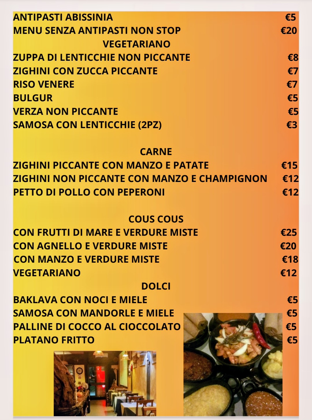 Menu from Abissinia