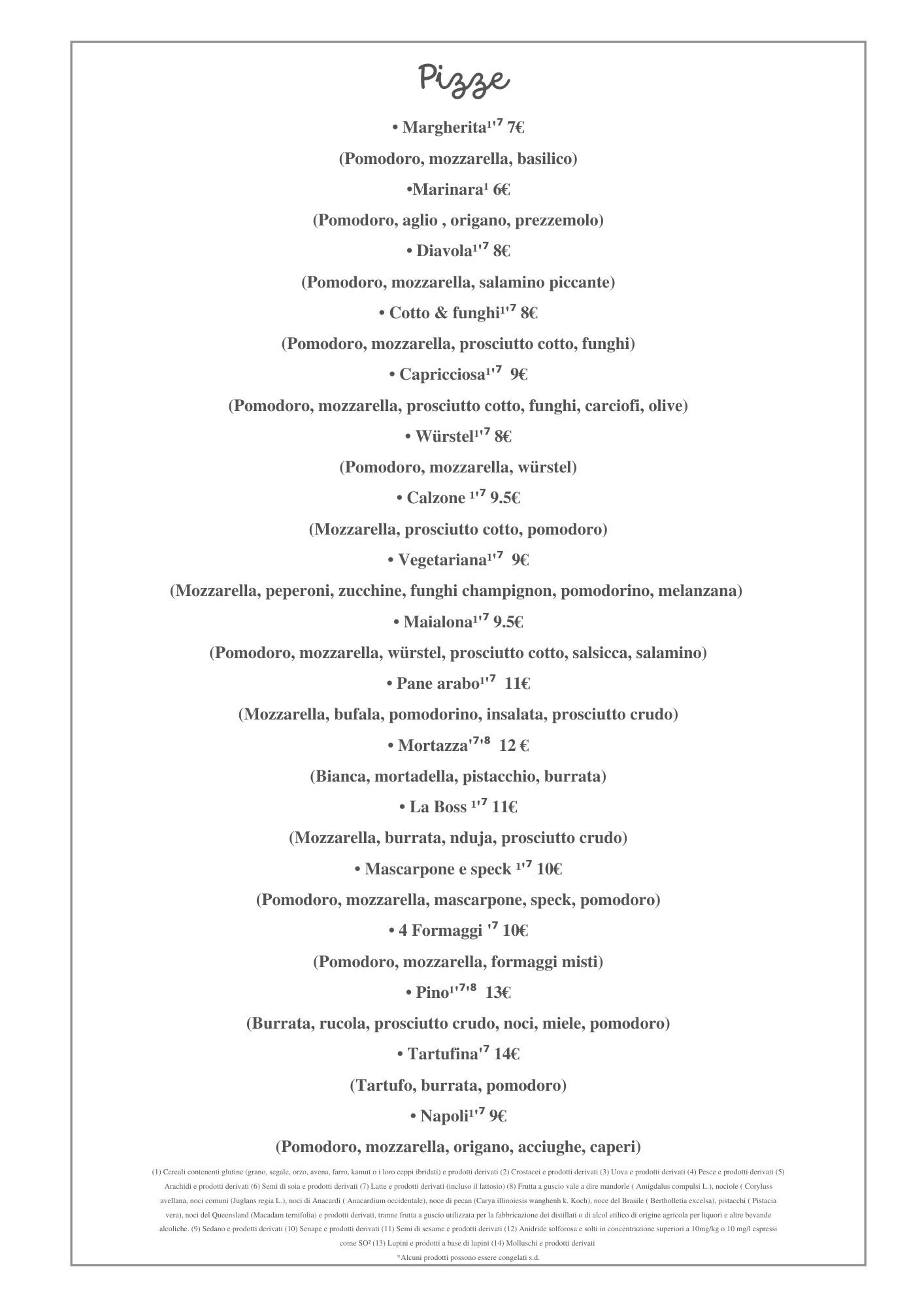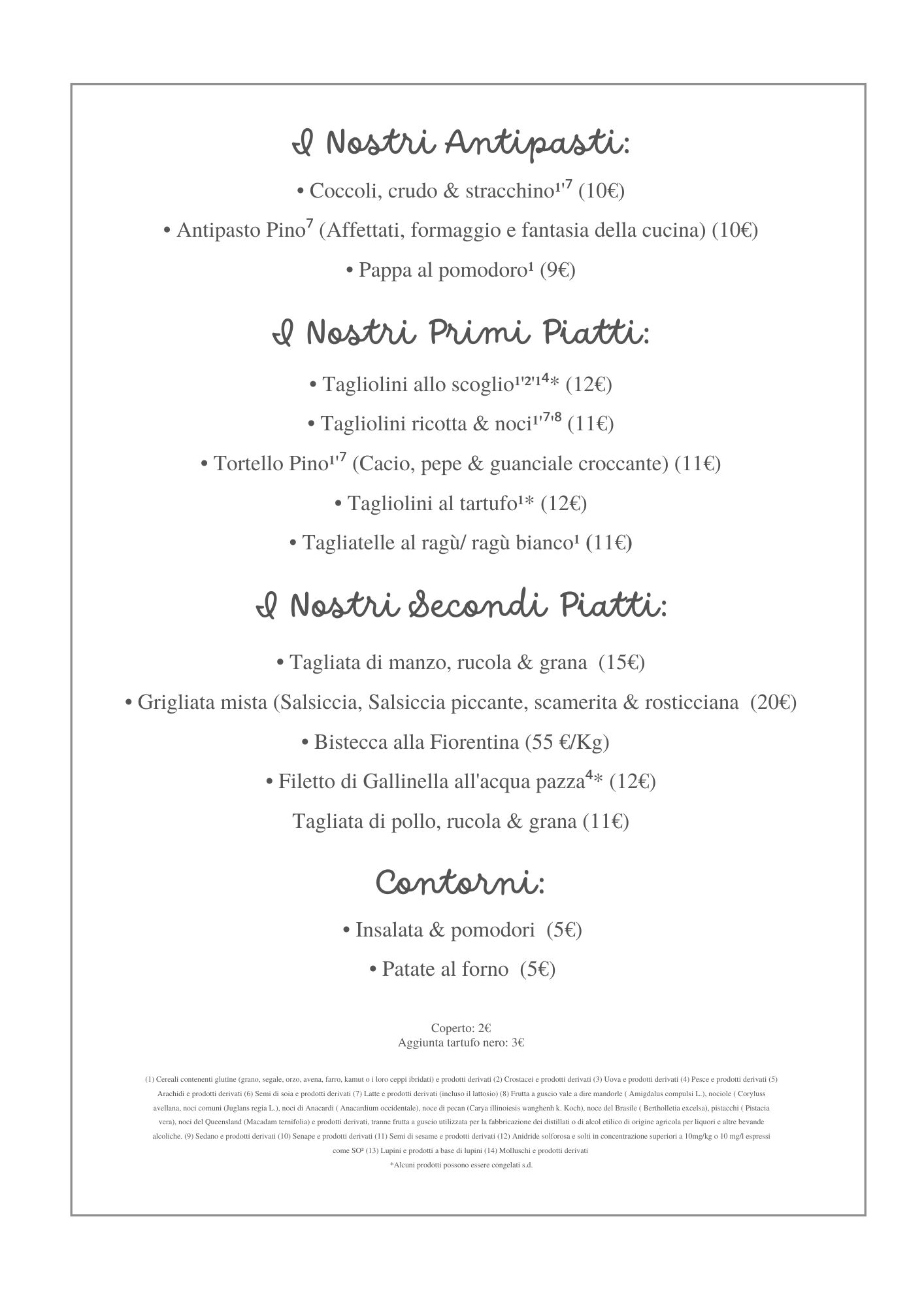 Menu from Bar Pizzeria Da Pino