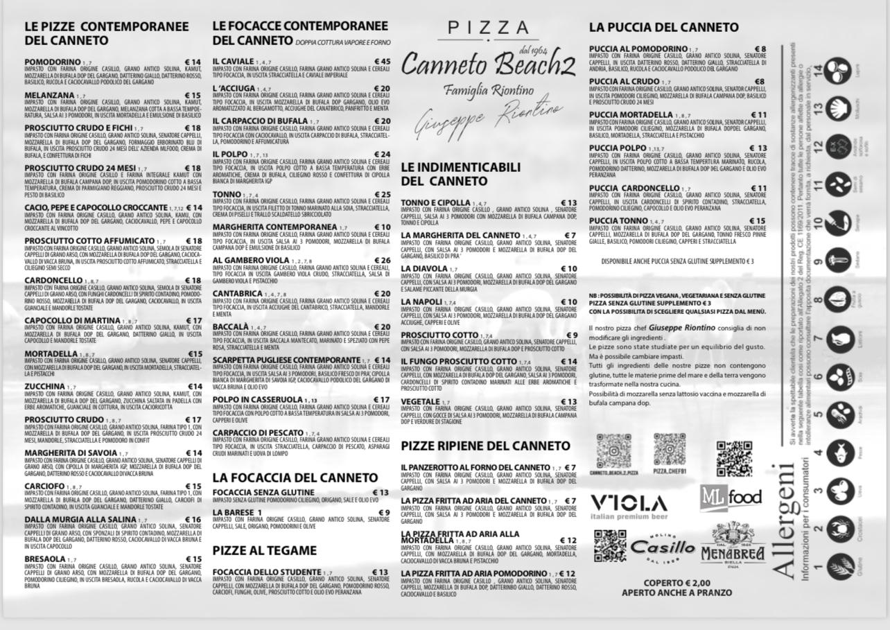 Menu from Canneto Beach 2 Pizza