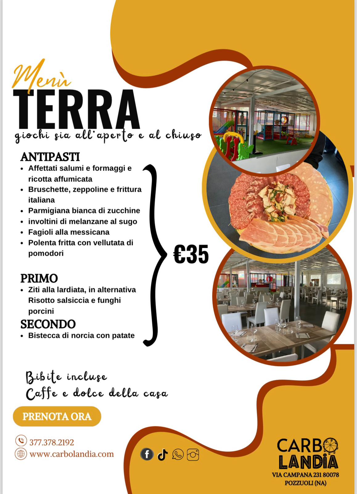 -antipasti (6 portate) - primo (ziti alla lardiata in alternativa risotto salsiccia e funghi porcini) -secondo (bistecca di Norcia con patate) bibita, caffè e dolce della casa inclusi