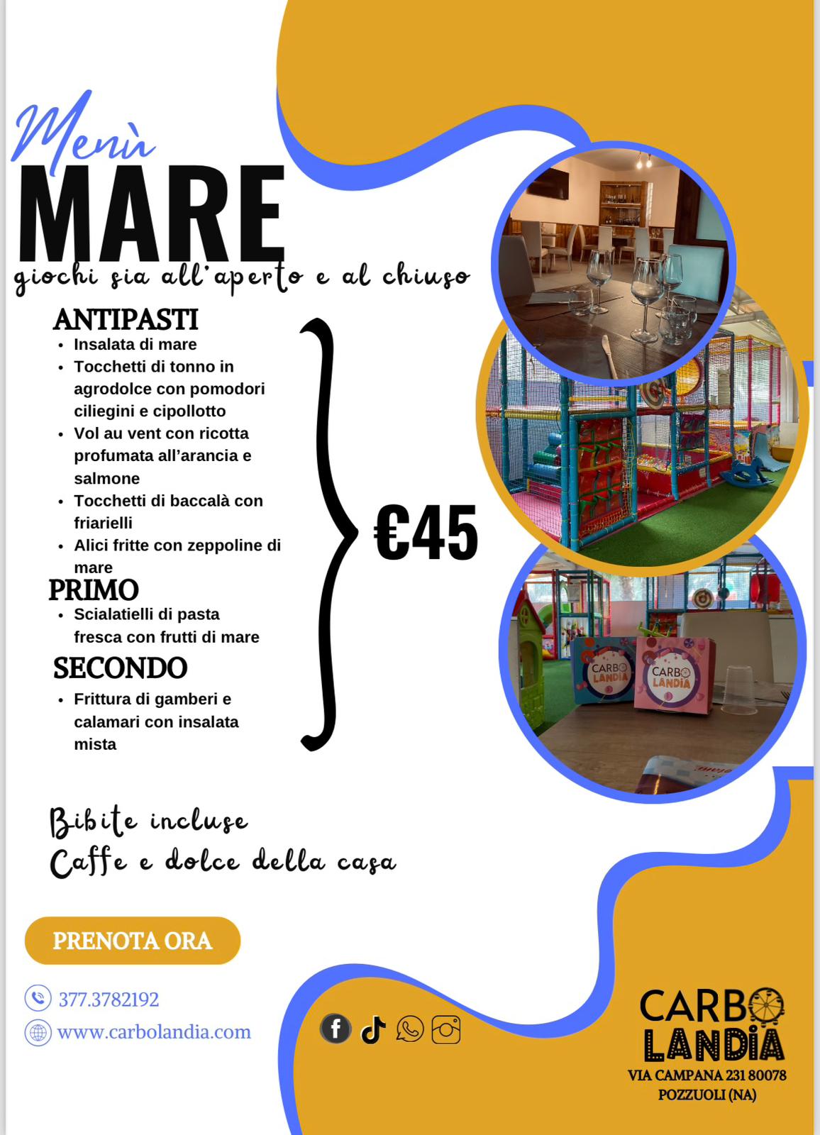 - antipasti (5 portate) - primo (scialatielli di pasta fresca con frutti di mare) -secondo (frittura di gamberi e calamari con insalata mista) bibita inclusa, caffè e dolce della casa