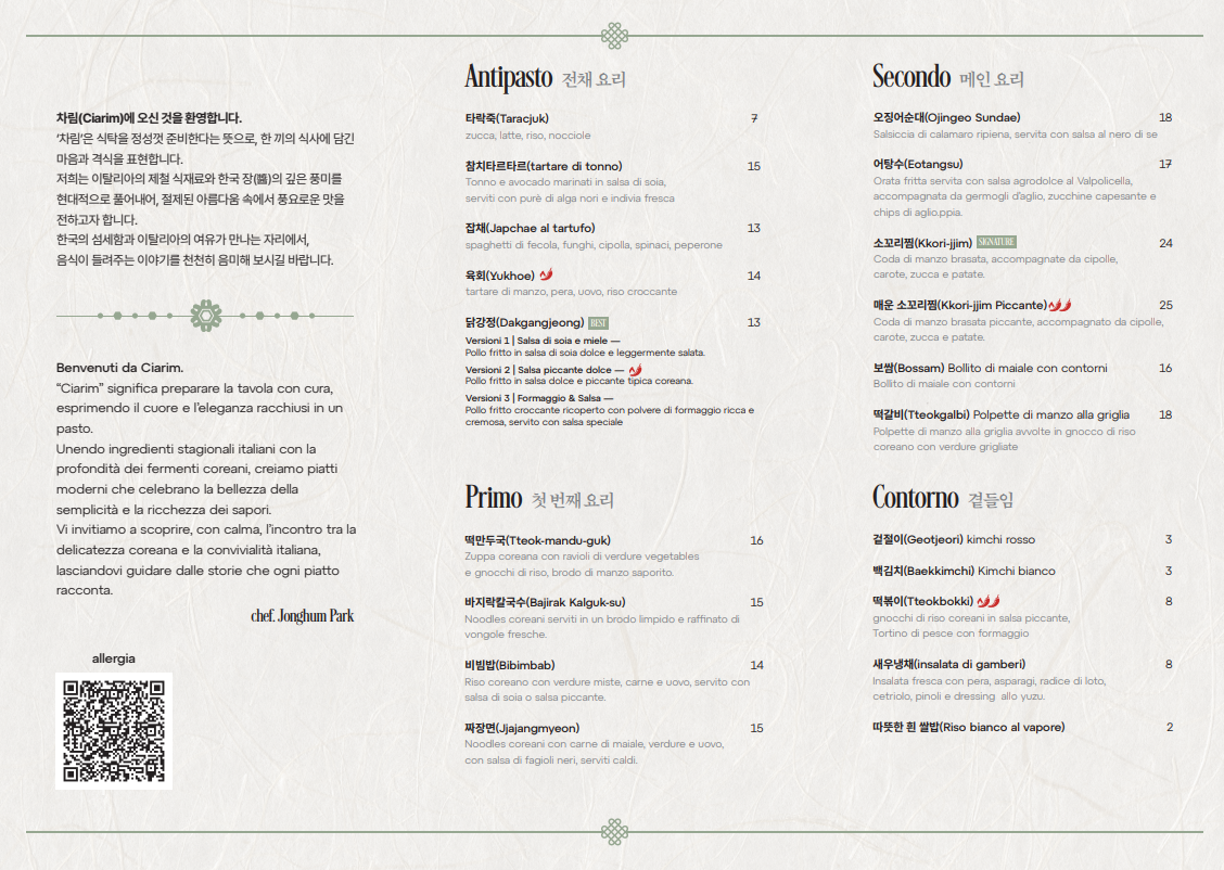 Menu from Ciarim - Korean Dining & Kitchen