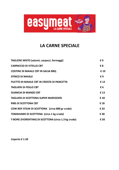 Does Easy Meat. La carne speciale. serve BBQ food?