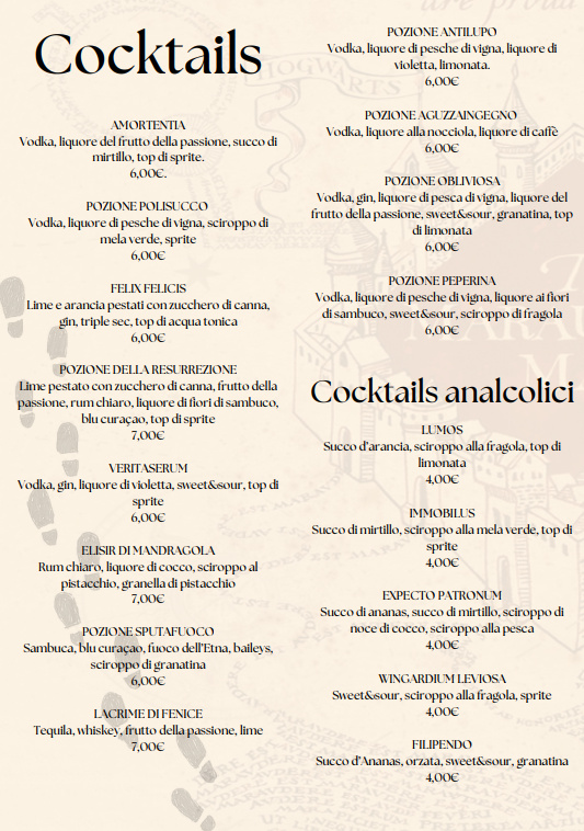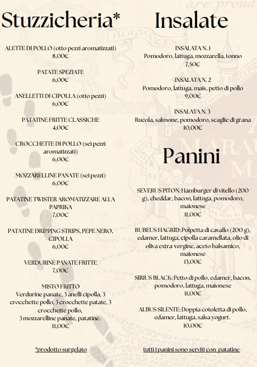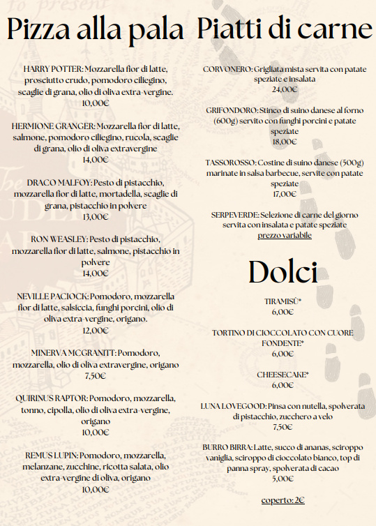 Menu from Gryffindor Public House