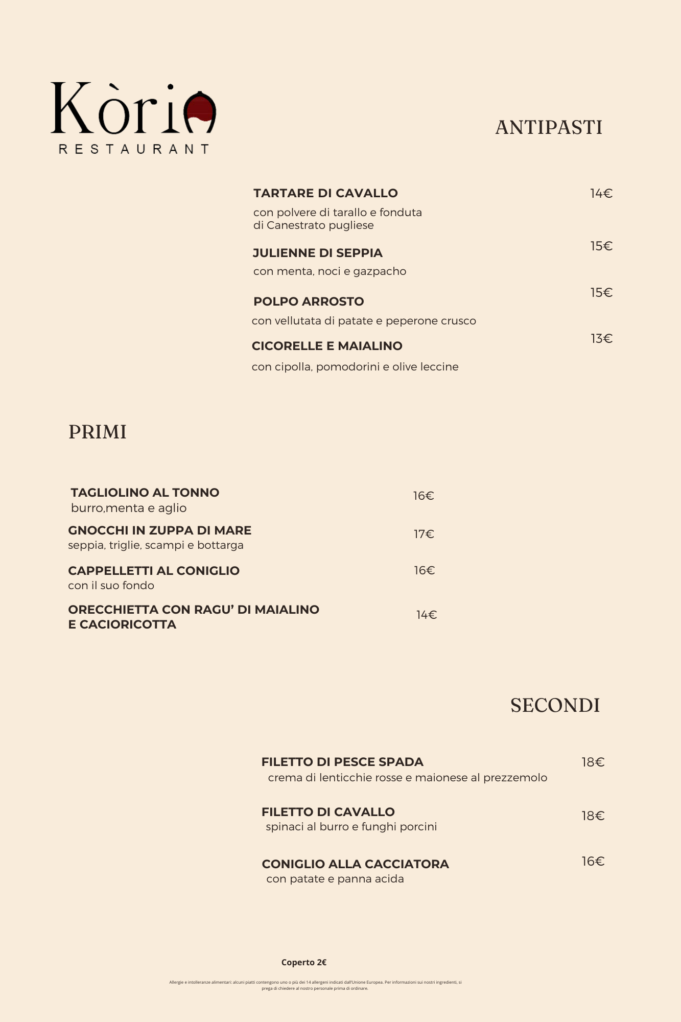 Menu from Kòria Restaurant