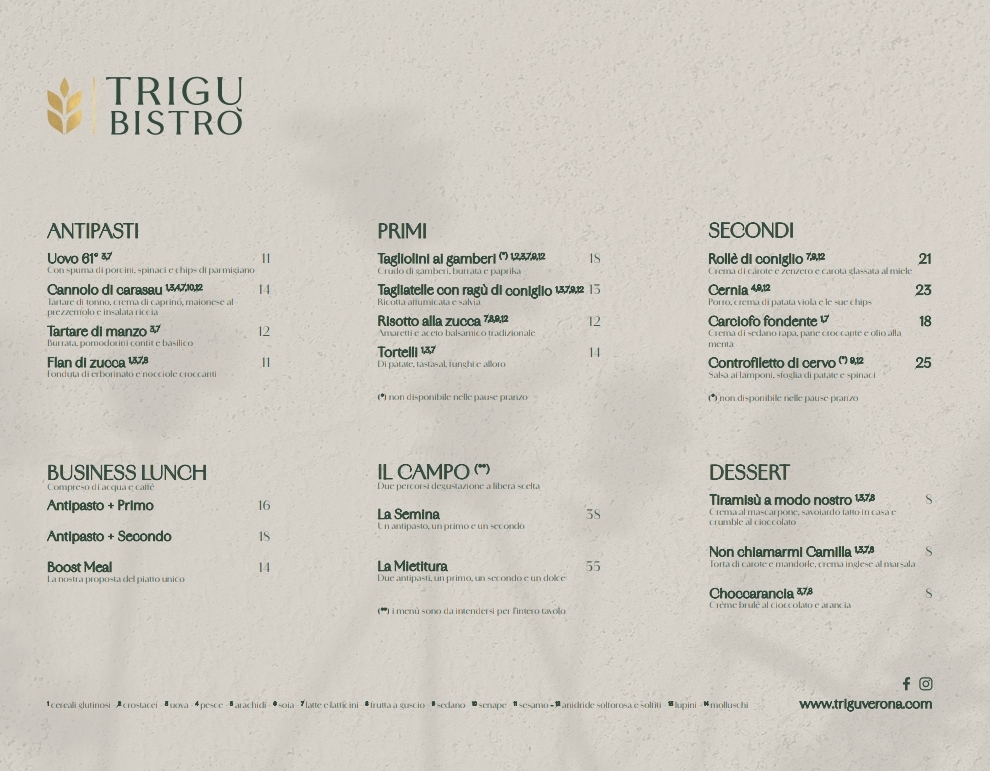 Trigù Bistrò Menu