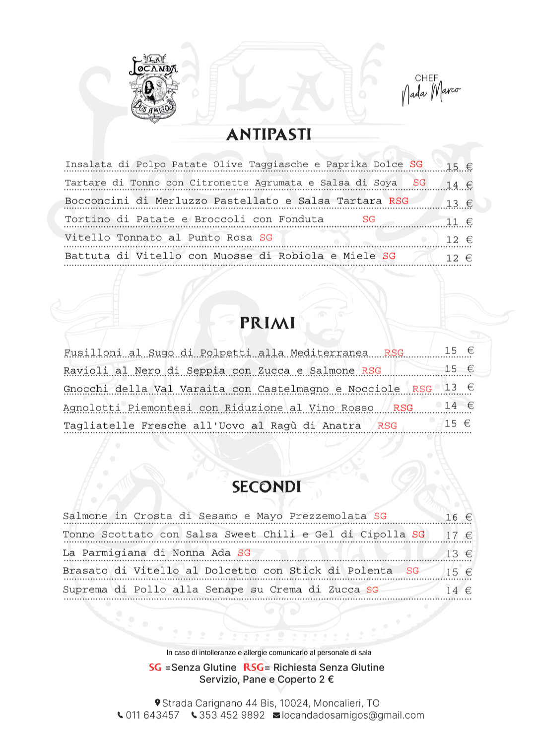 Menu from Locanda Dos Amigos | Ristorante Moncalieri