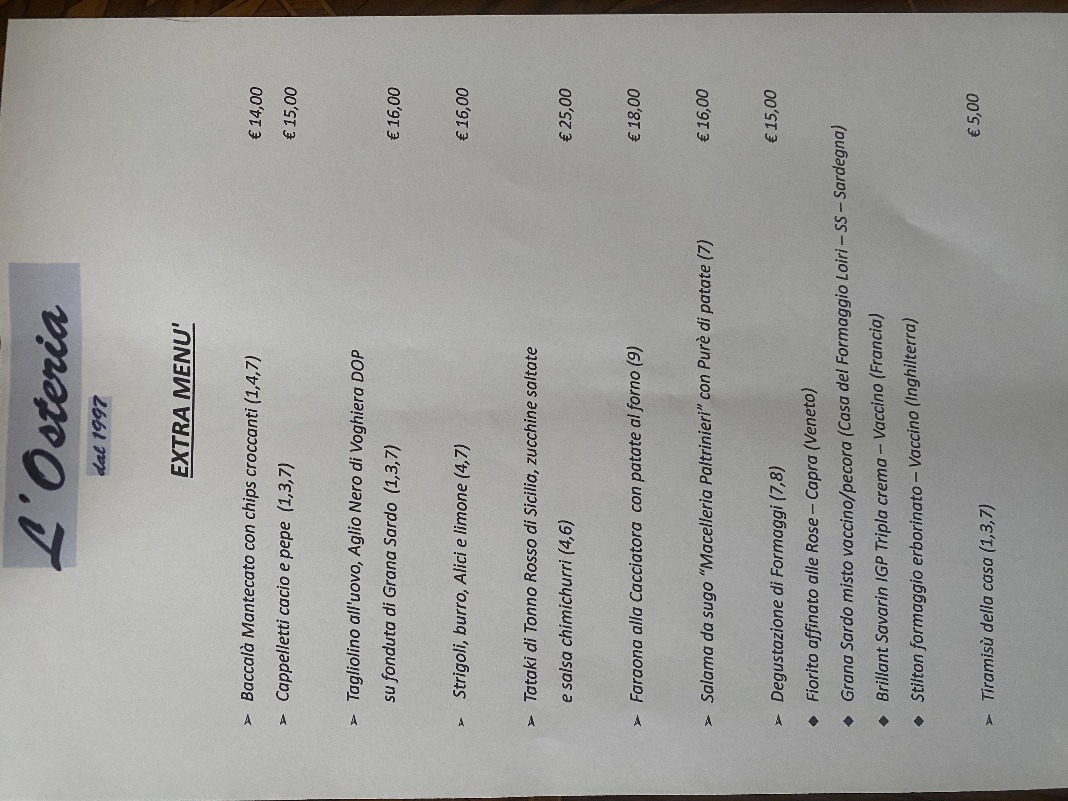 Can I pay with a credit card at L'Osteria dal 1997 restaurant?