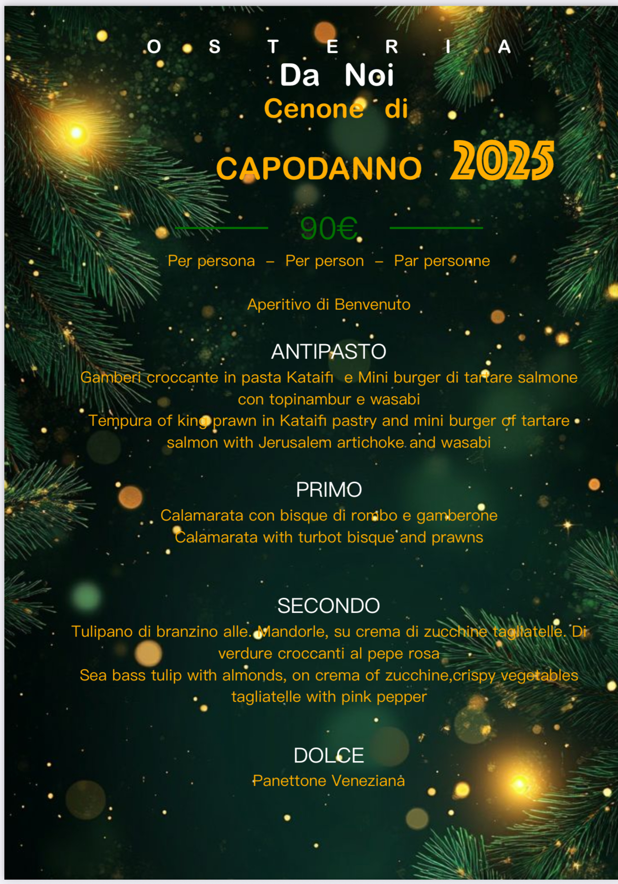 Menu from Osteria Da Noi