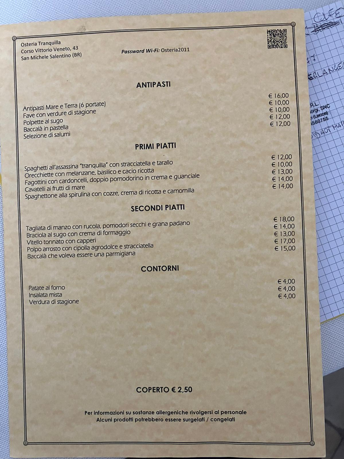Yes, the restaurant Osteria Tranquilla has Street Parking.
