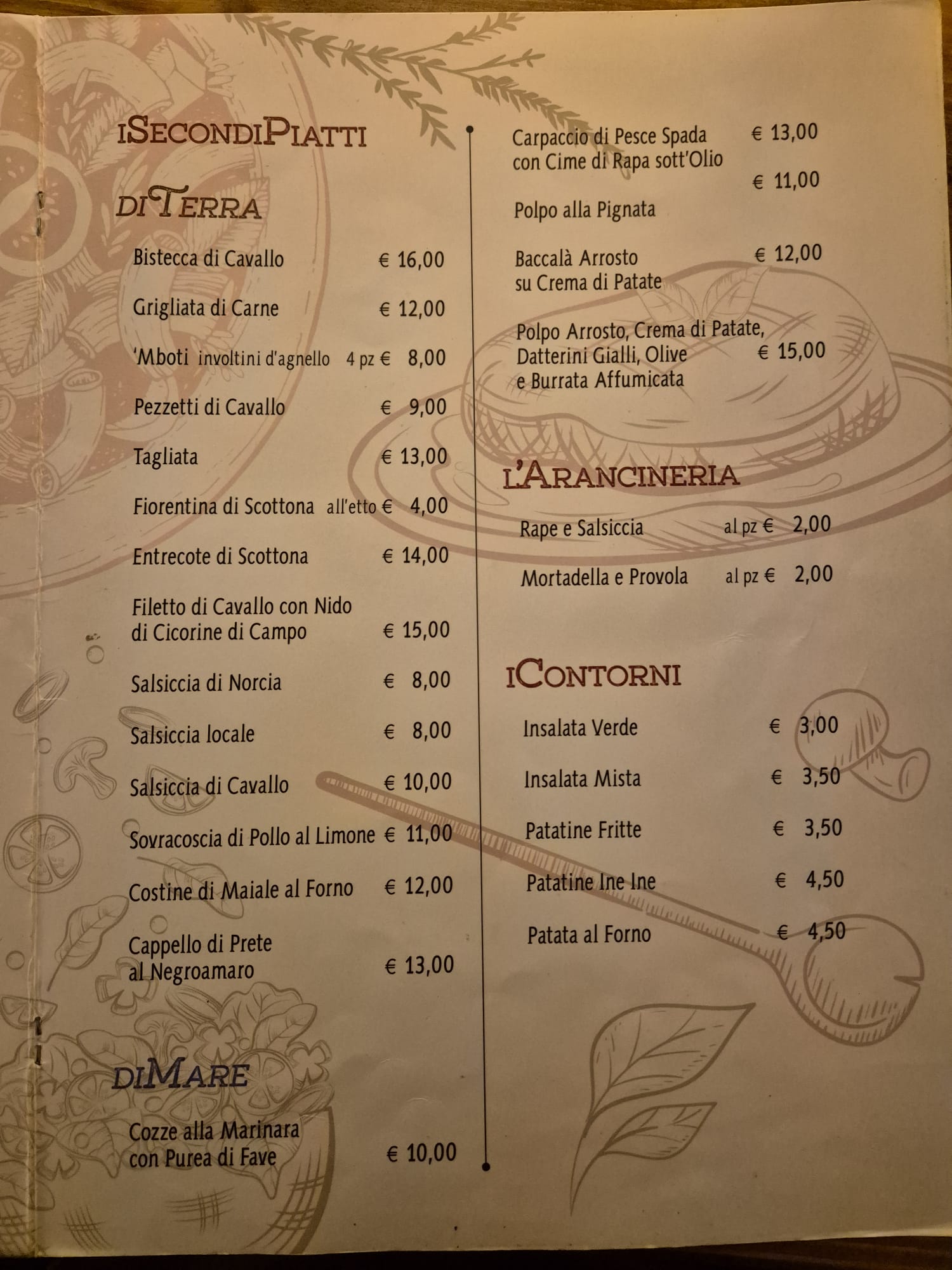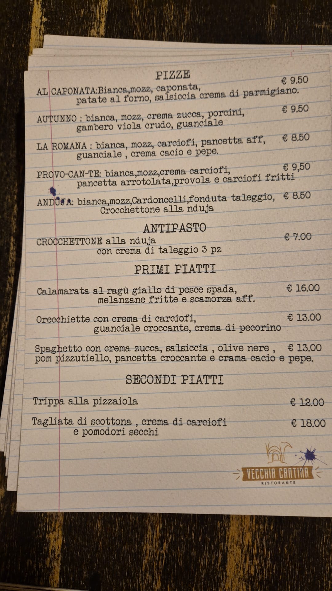 Menu from Osteria Vecchia Cantina