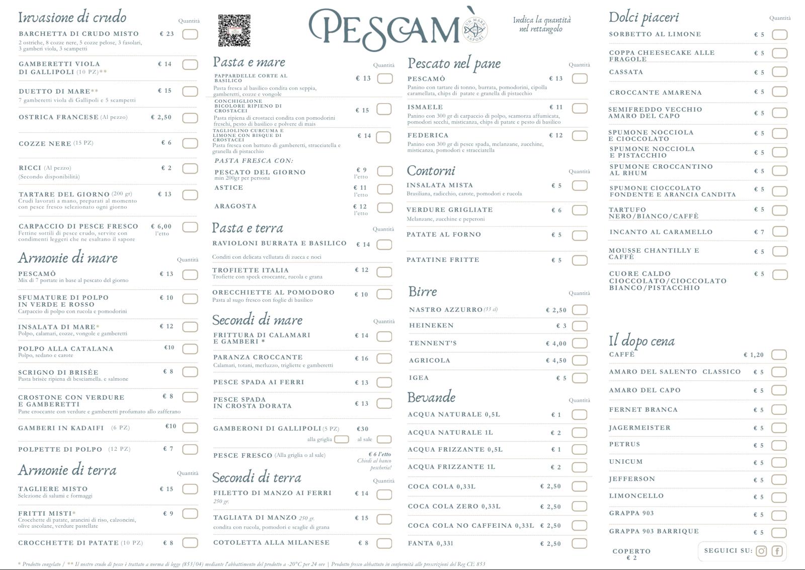 Menu from Pescamo' - Pescheria con Cottura