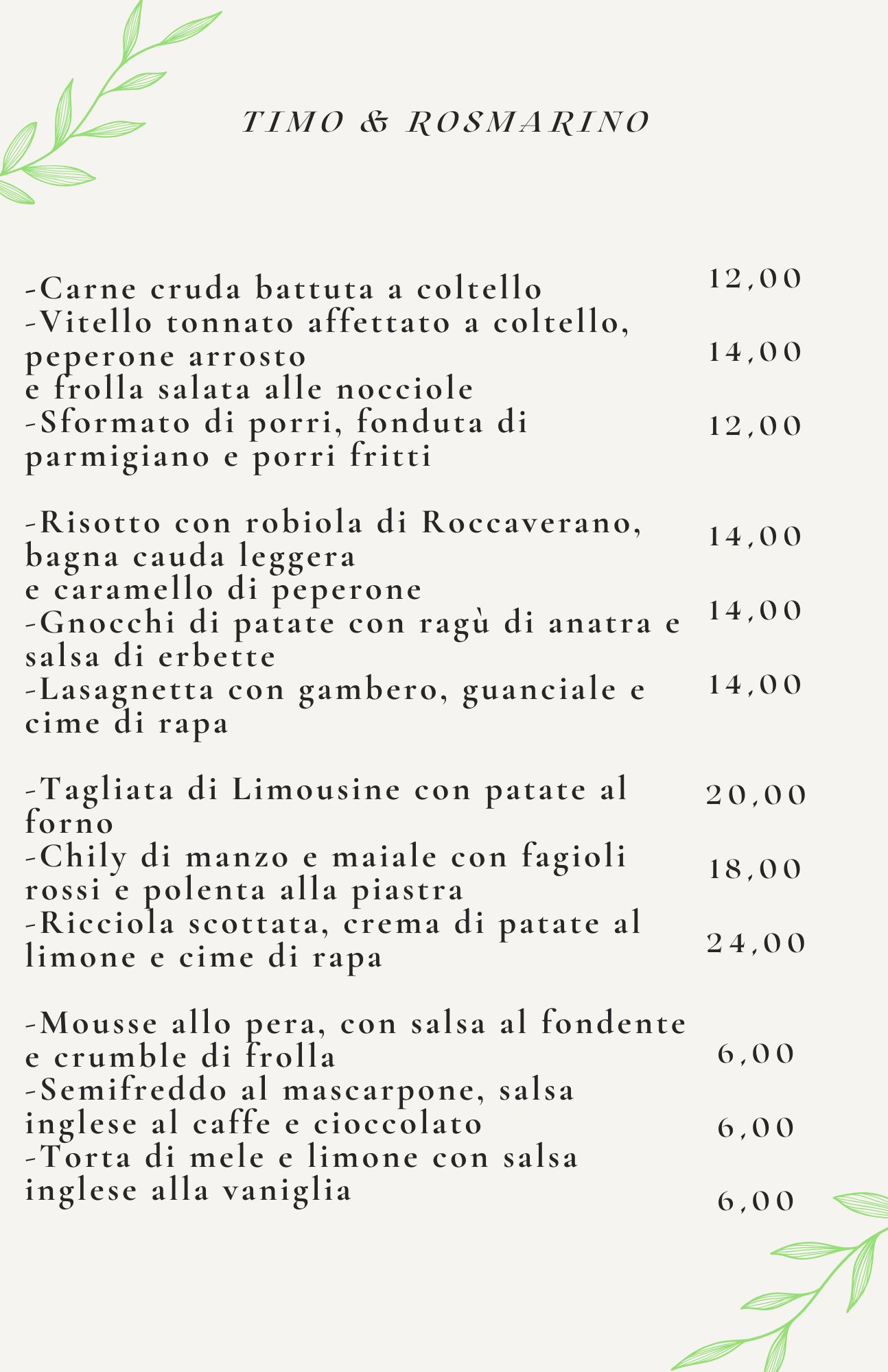 Menu from Ristorante Timo e Rosmarino