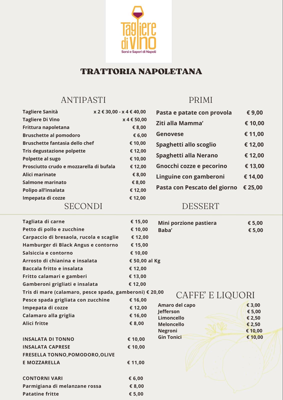 Menu from Tagliere Divino Sorsi e Sapori di Napoli