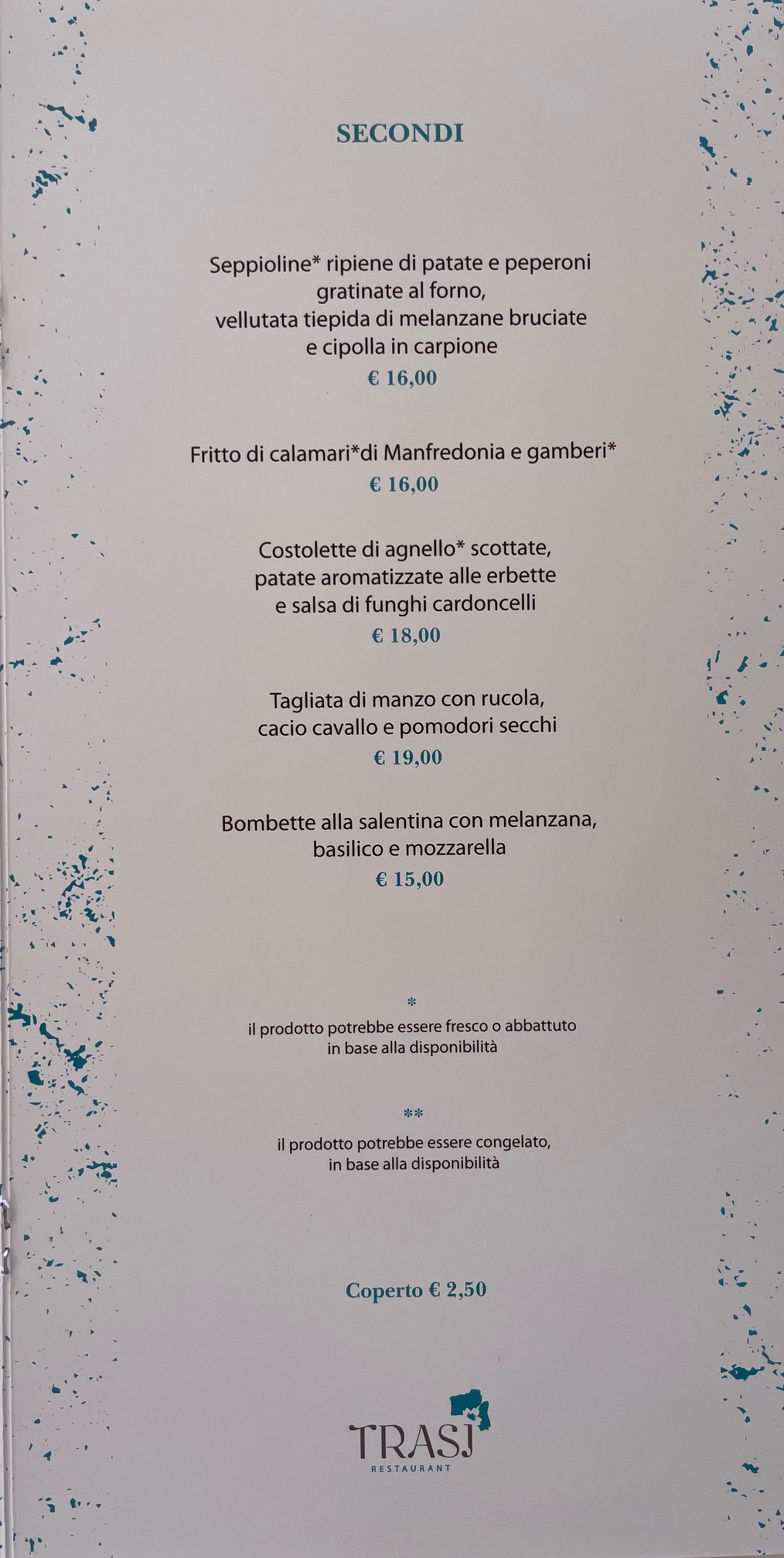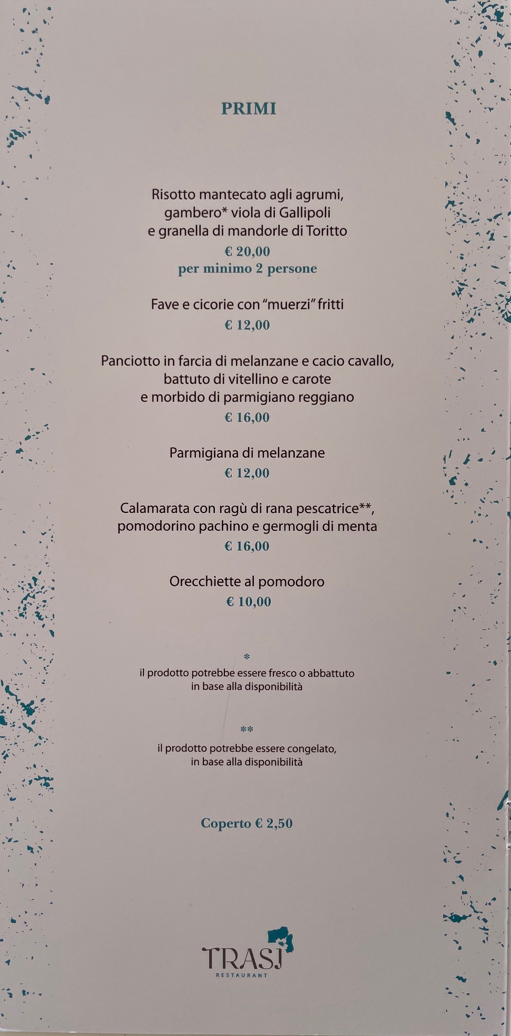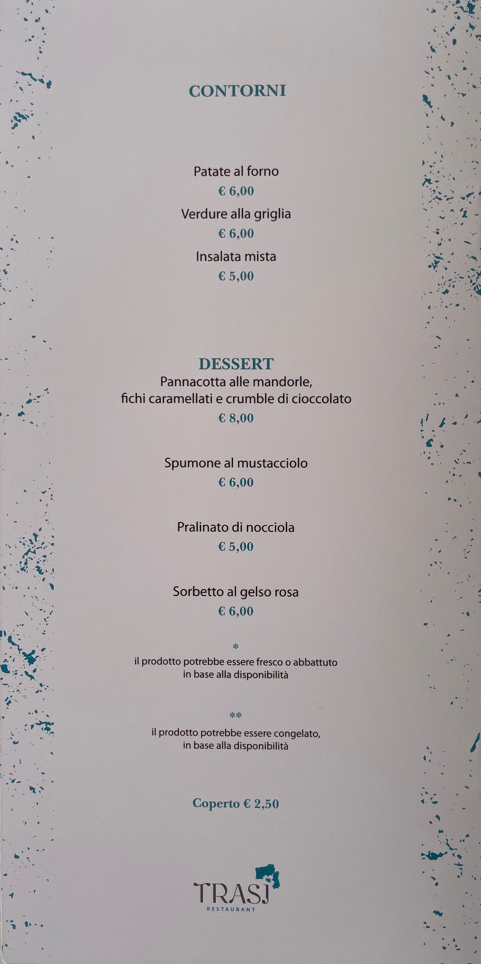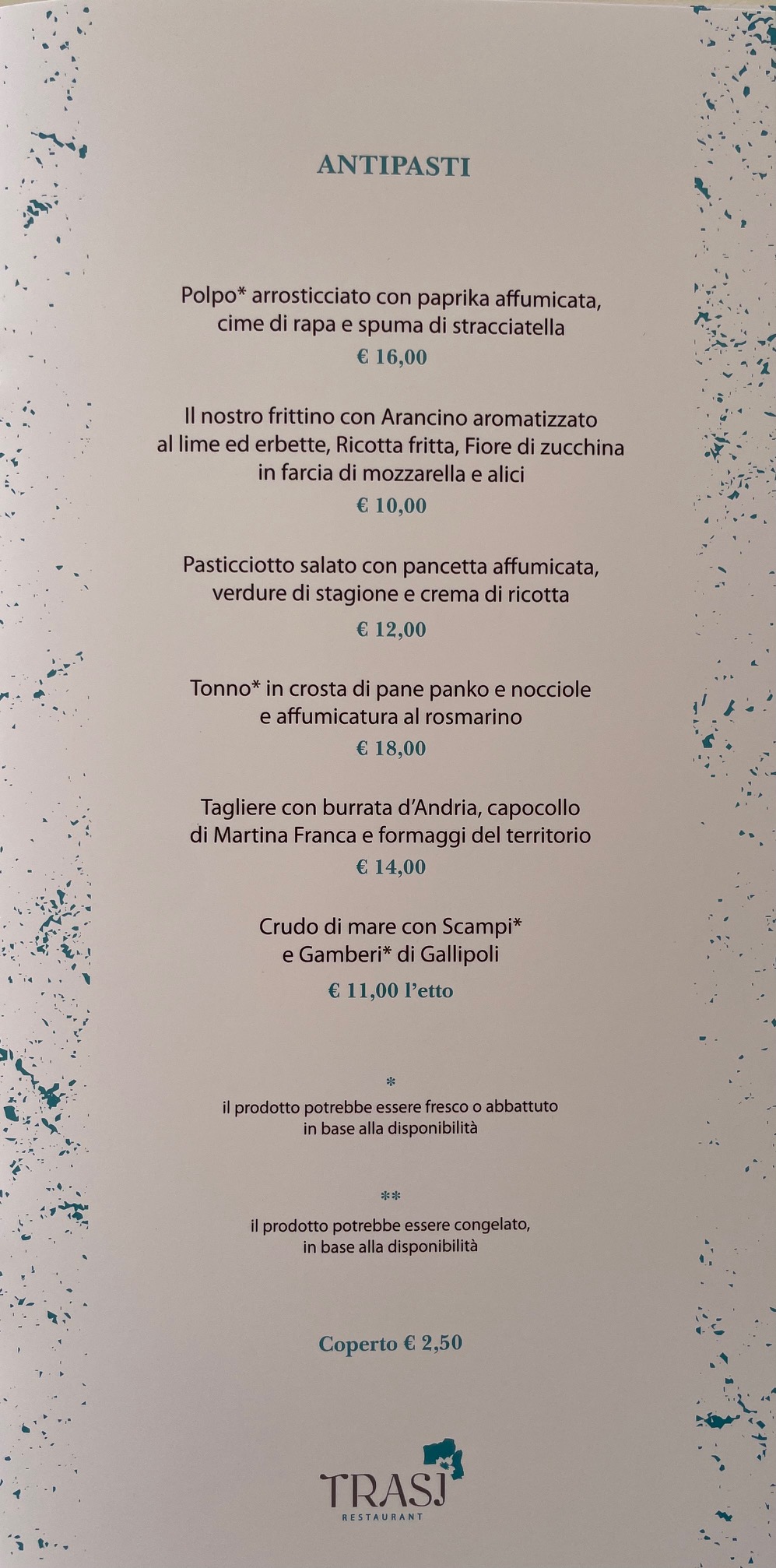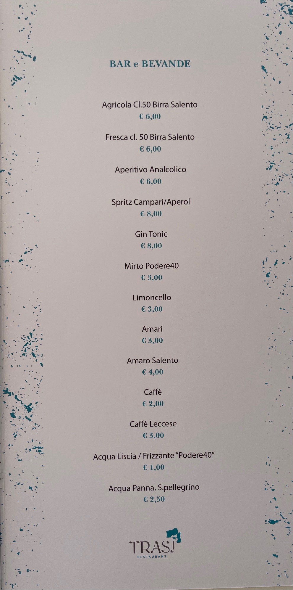 Menu from TRASI RESTAURANT by PODERE40