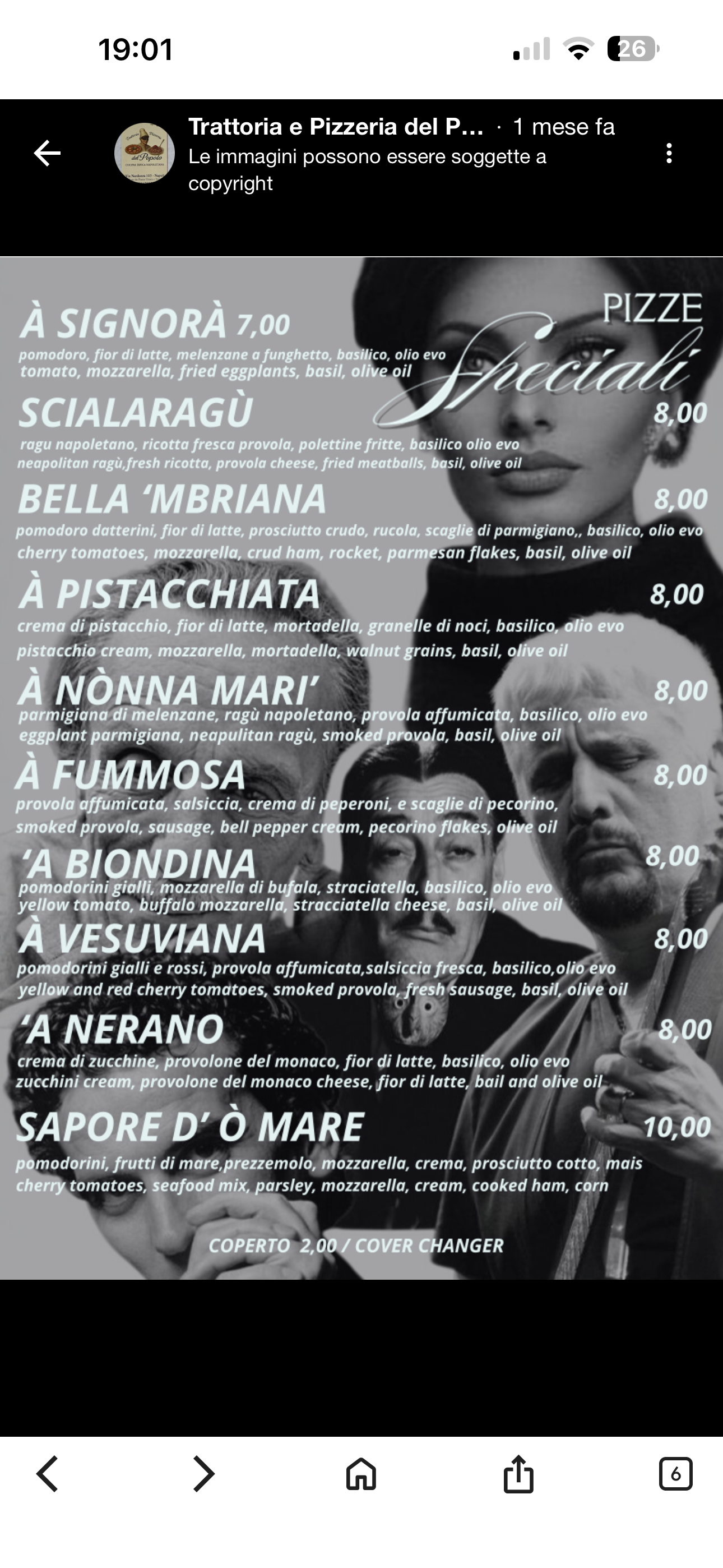 Menu from Trattoria e Pizzeria del Popolo