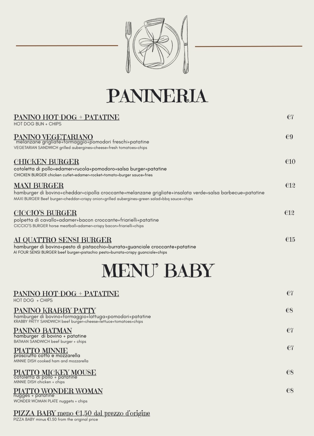 Menù di Ai Quattro Sensi