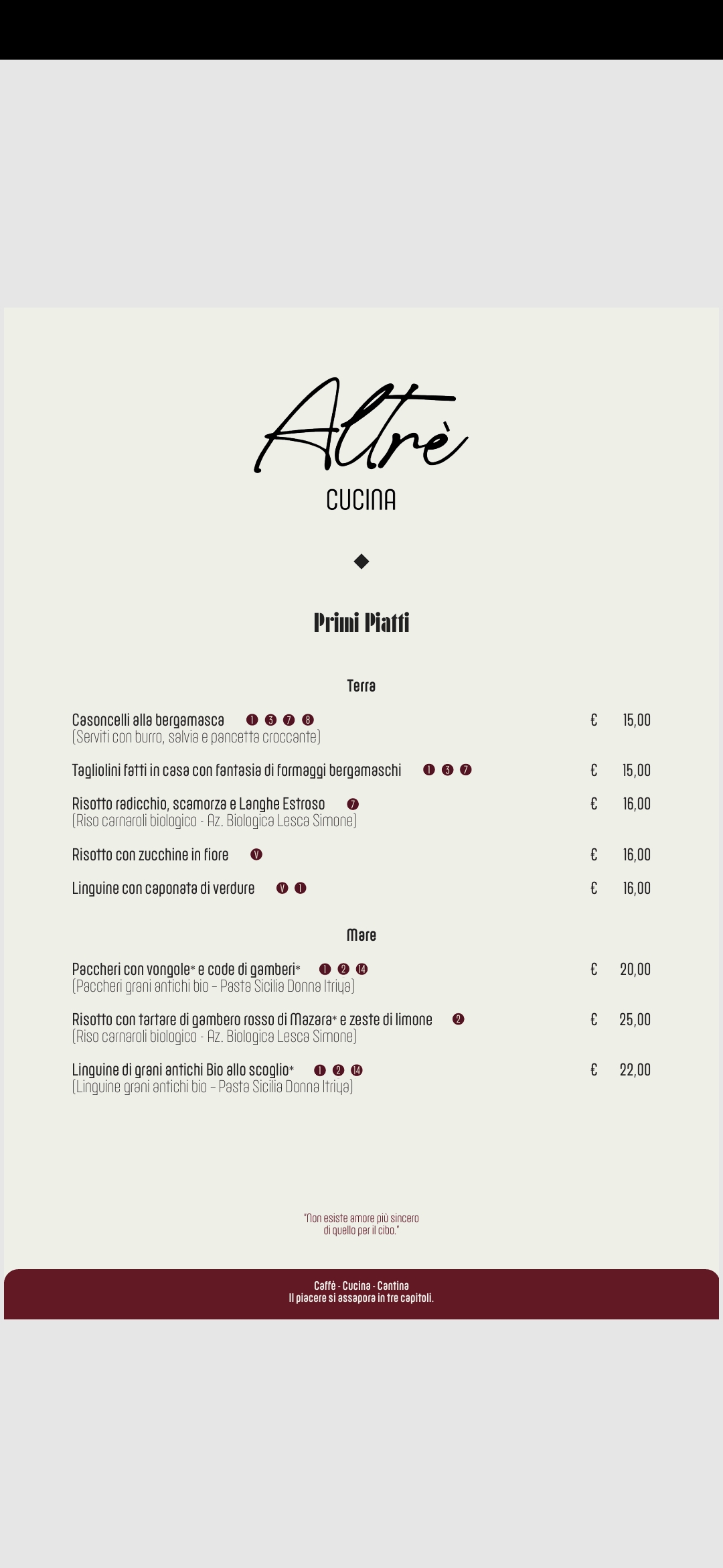 Menù di Altrè Milano - Caffè • Cucina • Cantina