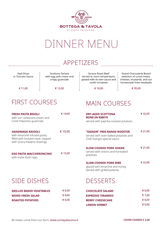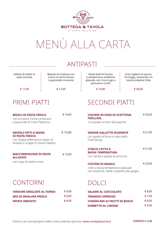 Menù di Bottega & Tavola di Corte Palazzina