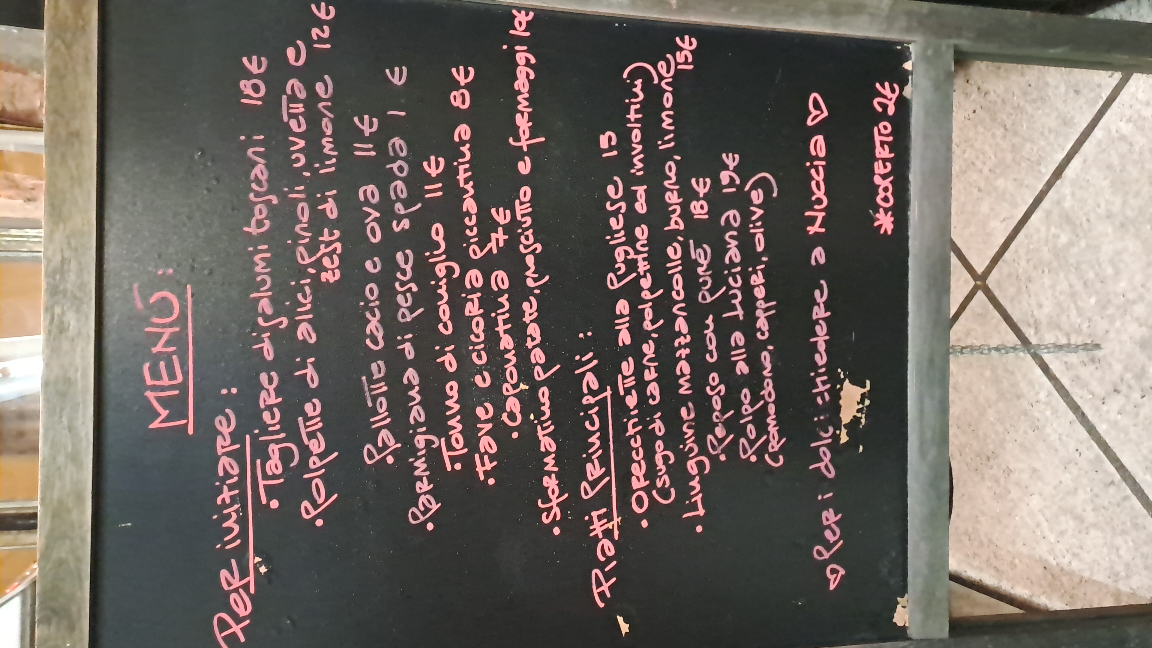 Menu from Nuccia bistrot