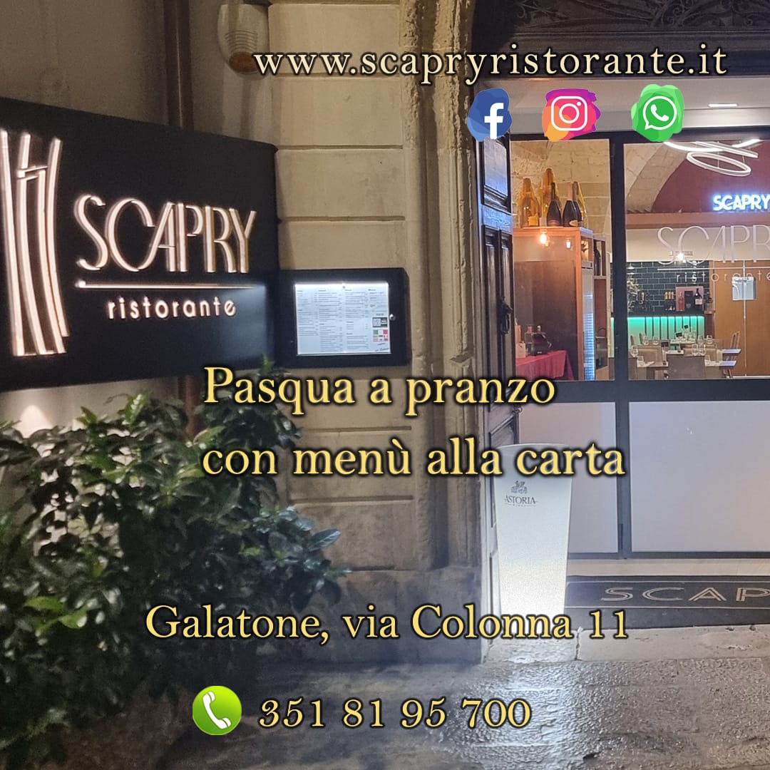 SCAPRY Ristorante è un locale Ristorante situato in Via Colonna 11, Galatone 73044. SCAPRY Ristorante è un locale molto frequentato nella zona di Galatone. Che tu sia alla ricerca di un pasto leggero o di un'esperienza gastronomica completa, esplora i piatti del SCAPRY Ristorante e sperimenta l'autentica cucina Italiana di Lecce.
